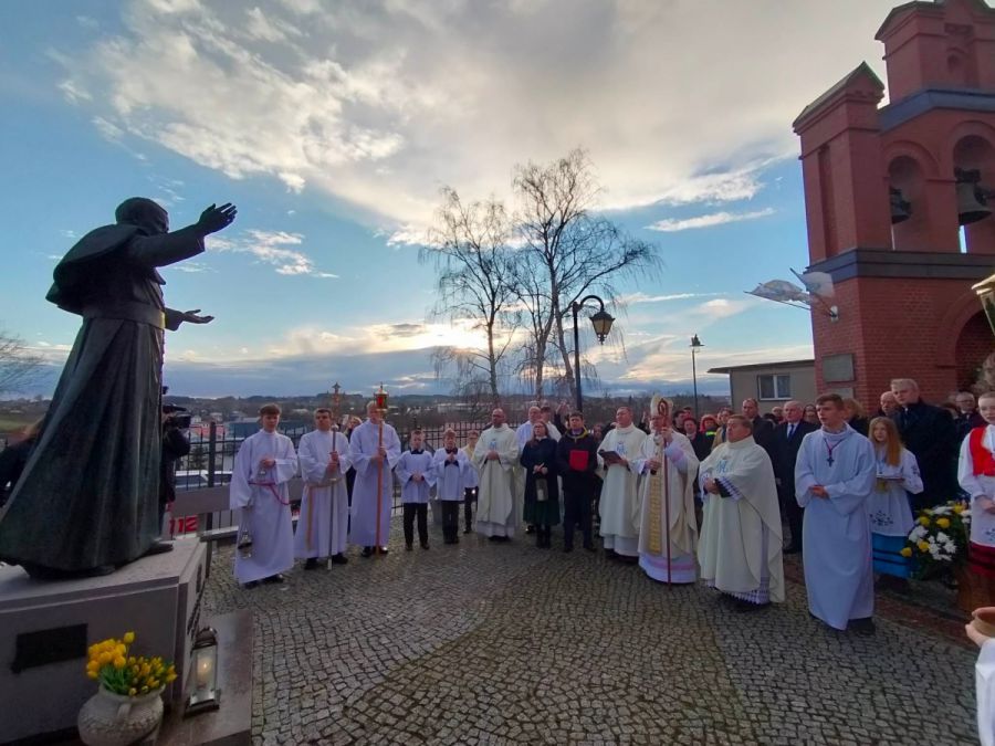 *Modlitwie przy figurze Świętego Papieża przewodniczył Ksiądz Arcybiskup Tadeusz Wojda SAC - Metropolita Gdański w asyście proboszcza parafii ks. Łukasza Białka oraz zgromadzonych kapłanów.